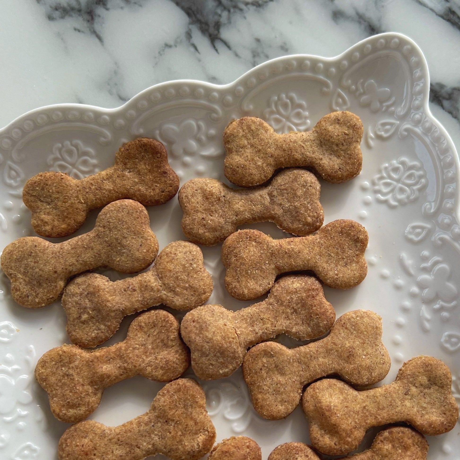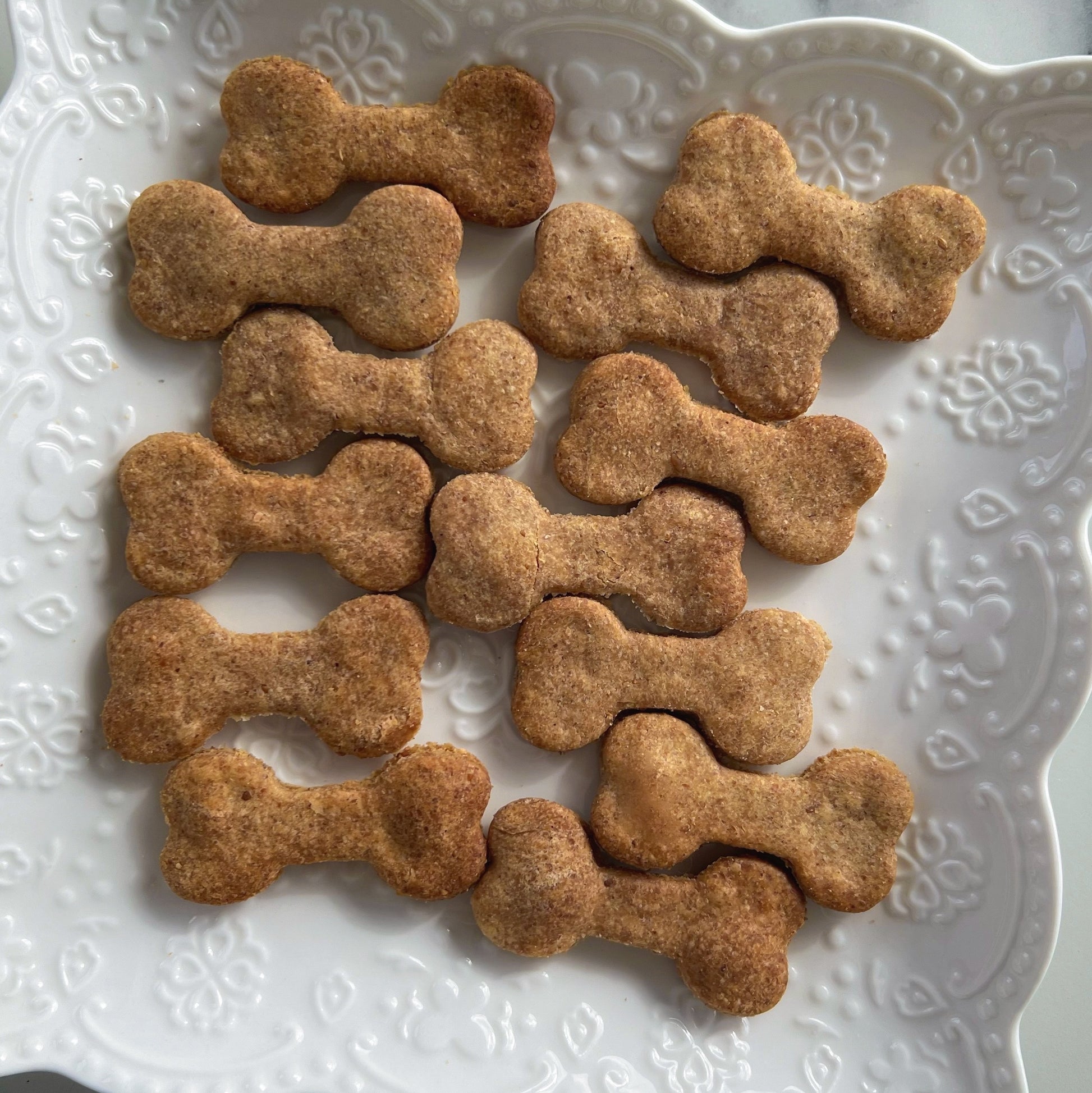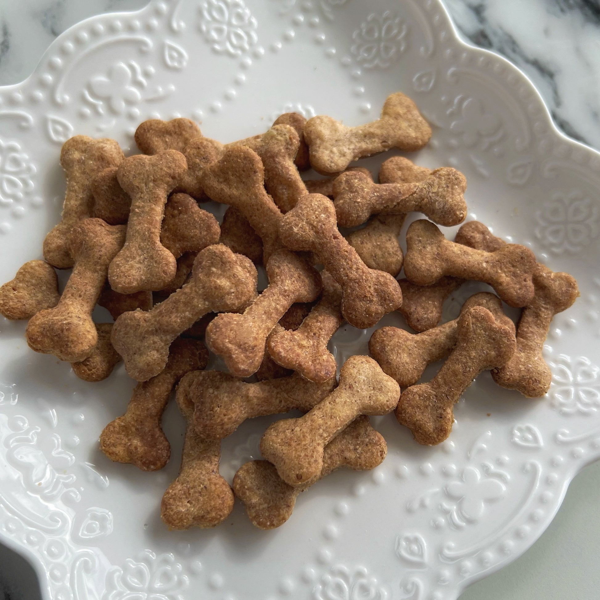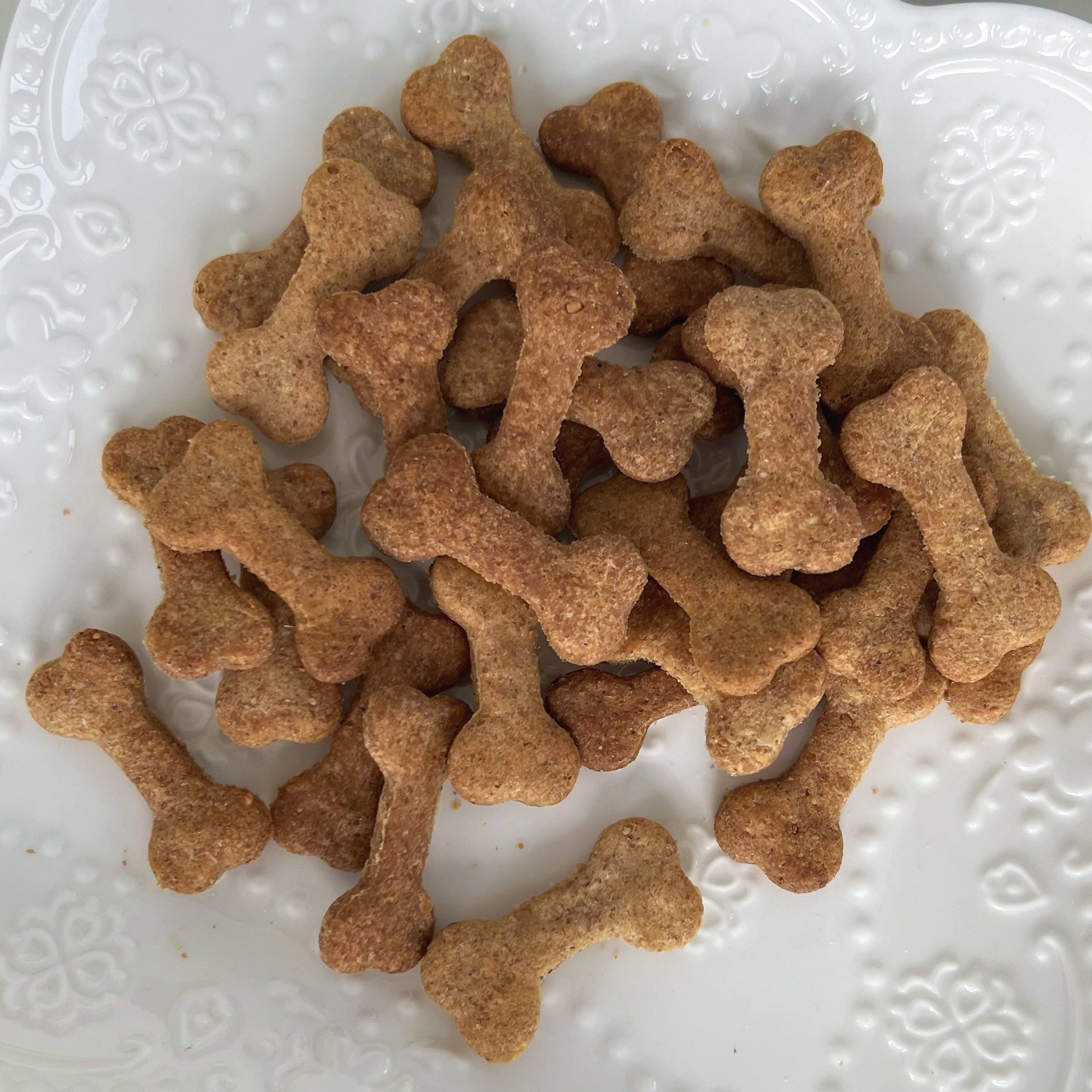 Your furry friend will surely wag their tail in delight as they sink their teeth into these PB treats. The combination of organic unsalted peanut butter and whole wheat flour not only ensures a scrumptious taste but also provides a healthy snack option for your pup. Comes in the perfect bite size for small to medium breed dogs! Every bite will be a special and unique experience for your loyal companion. Watch as they eagerly devour these delightful cookies, their eyes sparkling with joy and gratitude for such a thoughtful and delicious treat.